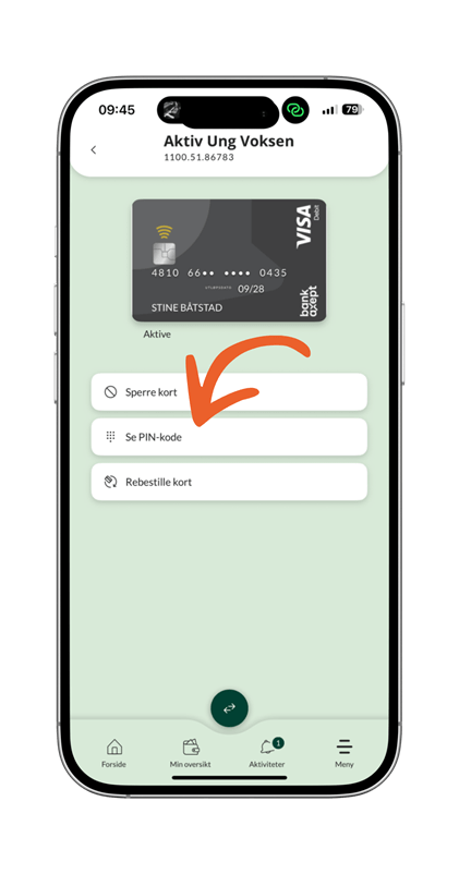 - Under bildet av kortet er knappen "Se PIN-kode"