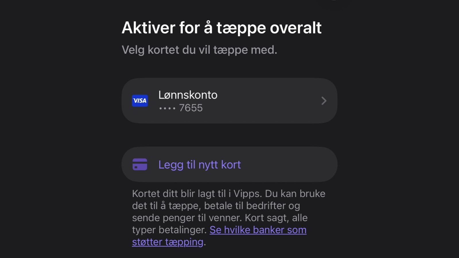 Slik legger du til et nytt kort i Vipps: